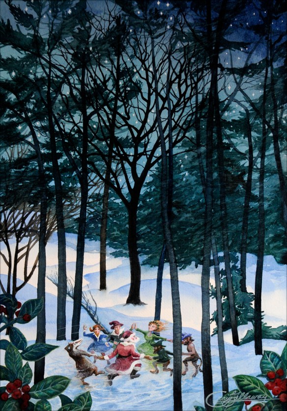 First came bright Spirits, not the Spirits of men, who danced and scattered flowers—soundlessly falling, lightly drifting flowers, though by the standards of the ghost-world each petal would have weighed a hundred-weight and their fall would have been like the crashing of boulders.[2] Then, on the left and right at each side of the forest avenue, came youthful shapes, boys upon one hand, and girls upon the other. If I could remember their singing and write down the notes, no man who read that score would ever grow sick or old. Between them went musicians: and after these a lady in whose honor all this was being done.